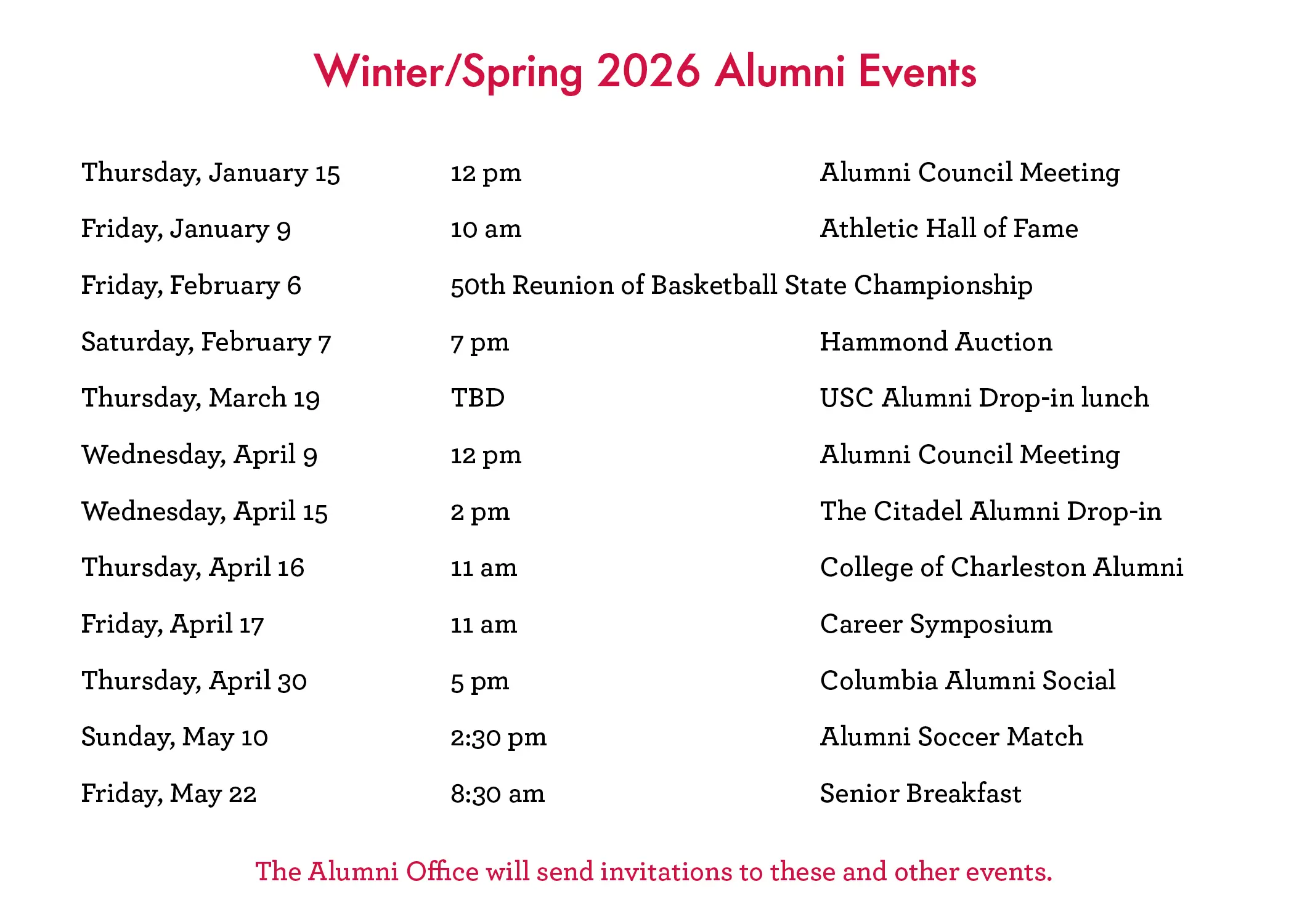 Alumni Calendar of Events